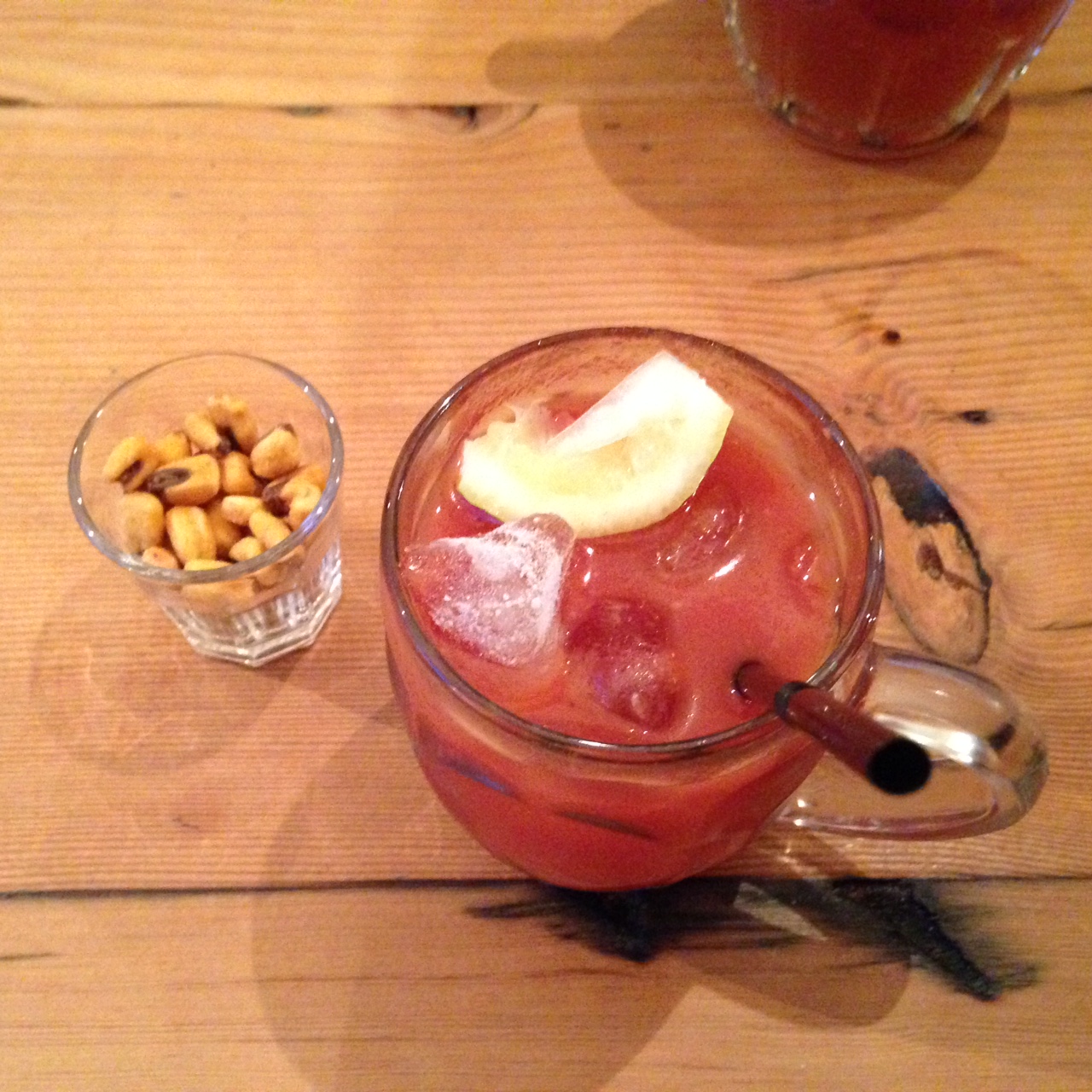 The interior is part rustic part industrial, with old wooden doors around the bar, hanging metal pendant lights and metal stools for seating. The menu, which is written on a chalk board on the wall, is updated daily and changes in the evening, when they add dishes such as the meat and cheese plates which are perfect for sharing with a bottle of wine. At the weekend during the day time the menu features brunch style dishes such as baked egg or Baghdad eggs. Since I was nursing a bit of a hangover I opted for a Bloody Mary. Priced at £4.50, I thought it was rude not to try one. With a decent kick to it, it definitely helped my hangover and I’m sure it won’t be the last one I have there. Food wise I shared a meat plate which consisted of a selection of decent salami. I loved the addition of the free shot glass of bar snacks that came with the drinks we ordered too, very continental and a much appreciated addition to the cocktail. 161 Food + Drink support local suppliers too which is nice to see. Beers such as Canopy Brockwell IPA brewed in Herne Hill and Late Knights brewed in Penge are served. My other half sampled the Late Knights IPA which he approved of.