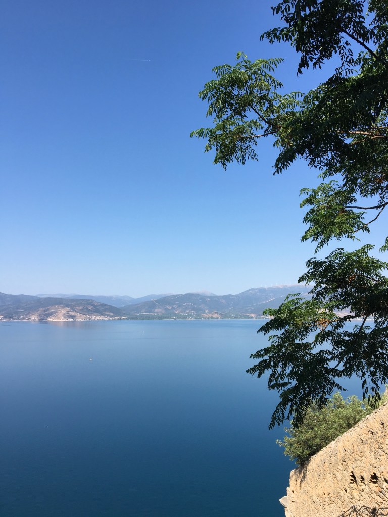 There are some great places to explore both in and around the town. Perched high above the town on the hill of Palamidi is Nafpilo’s principal fort, Palamidi Fortress, a well-preserved, large historical castle site that was a major feat in terms of its fortifications. Built by the Venetians in 1711–1714, it was a key military base during the Greek War of Independence. To reach Palamidi Fortress by foot is a very steep climb of 216m up 890 large stone steps set in the edge of the hillside. The steps are in the shade in the morning, but even so it is still a tough, hot climb to the top. Thankfully, the climb is most definitely worth it – the vast fort itself is interesting to explore and offers stunning views across the whole area. There is a small beach in the town but it can get quite crowded, so we chose to walk out of the town behind the castle in search of a more secluded spot for sunbathing and swimming. The walk takes you along a gravel track overlooking the sea which is strikingly picturesque and peaceful.