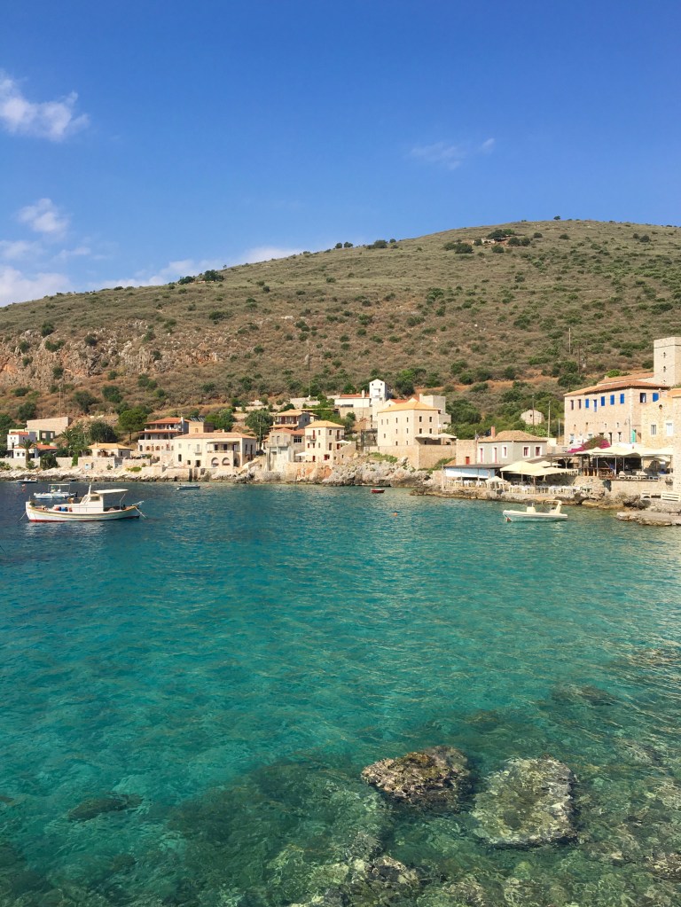 We stayed in an apartment located a mile or so out of the town itself, in a small village called Mavrovouni. The village is built on top of the hill above the famous Mavrovouni Beach, a vast sandy beach which stretches for over 5 km. Strangely enough, we didn’t spend any time at all on this beach. Our apartment had incredible views across the bay of Laconia from the balcony, as well as access to a private swimming spot, so we mainly hung out there during the day and ventured into Gythio to eat in the evening. On one afternoon, we drove to a small port village called Limeni on the western side of the Mani peninsular, which had been recommended to us by a waitress we met in a restaurant in Monemvasia. Set against dramatic, rugged hills, Limeni is beautifully picturesque, with breath-taking views, sparkling blue seawater and old stone houses. Although it’s a tiny place, there appeared to be a number of nice bars and restaurants so it could easily make a nice base for a few days.