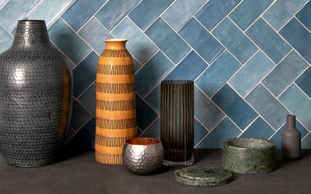 Here are some images from a recent photoshoot I art directed and styled for Domus Tiles in London, shot by interiors photographer Anna Stathaki. The shots feature a glazed ceramic collection made in Spain, called Kaleidos. With a beautiful undulating surface and blended shade variation, the tiles display an artisanal, handcrafted character. There are 11 colours in the collection, ranging from black, white and grey to green, blue, and yellow – all available in both matte and gloss. We mainly photographed the matte finish which has a lovely sheen anyway – except for the ‘Aqua’ pale blue shot which shows the gloss finish plus the second white shot below which shows a mix of matte and gloss tiles. You can check out the full collection at Domus here.